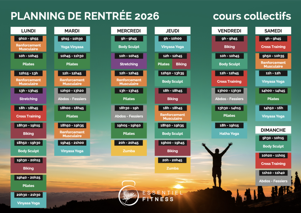 Des cours collectifs zen avec le pilates ( cours postural pour renforcer les muscles profond tout en apportant force et souplesse), yoga (on ne le présente plus 🙂 et Body zen (un pilates plus énergique et basé sur la relaxation).